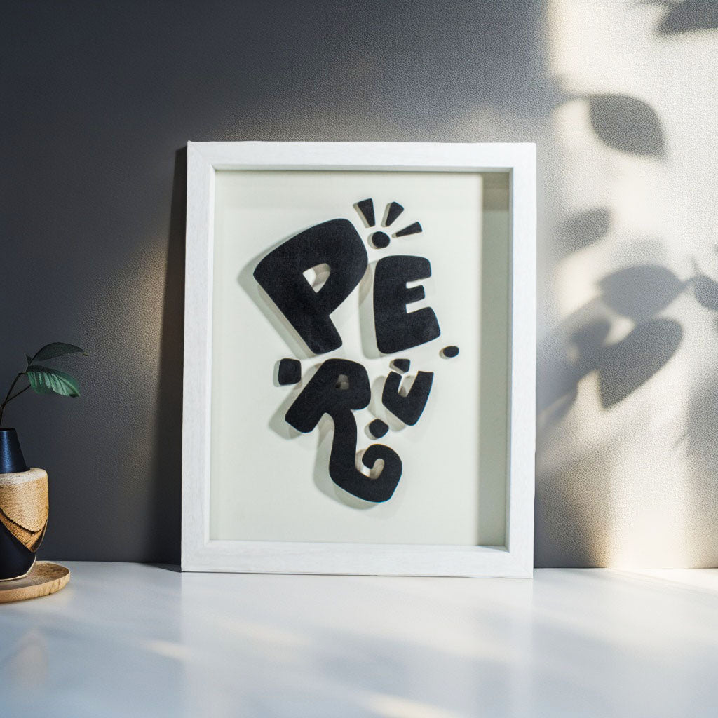 Cuadro Logo Perú Moderno - Diseño Tipográfico en Relieve 3D 20x25cm