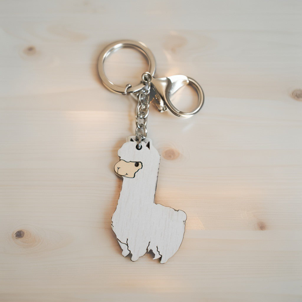 Llavero Alpino con diseño de Alpaca en madera MDF ártico