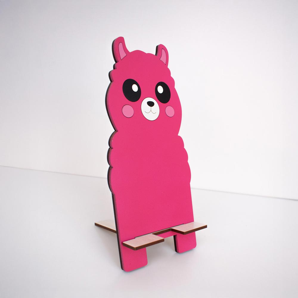 Soporte para Celular de MDF con Figura de Alpaca Rosa