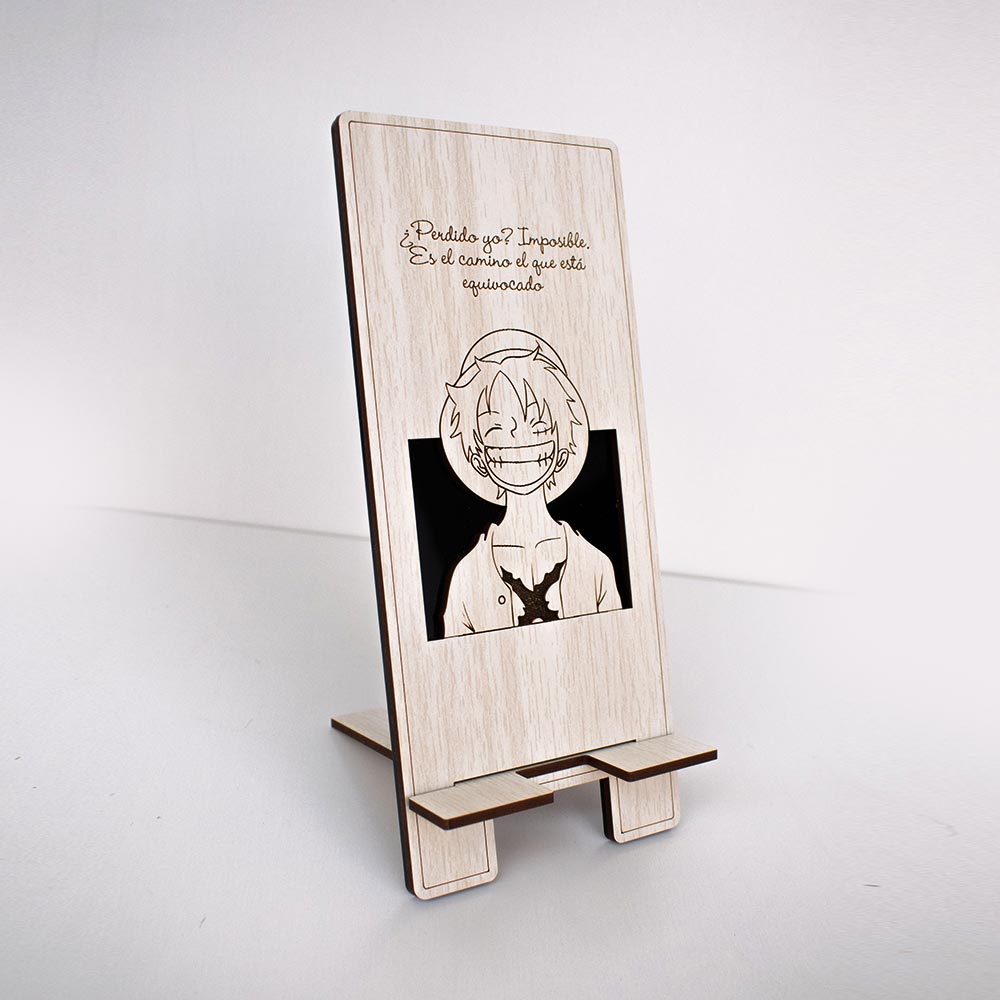 Soporte para Celular en MDF con figura de One Piece y grabado